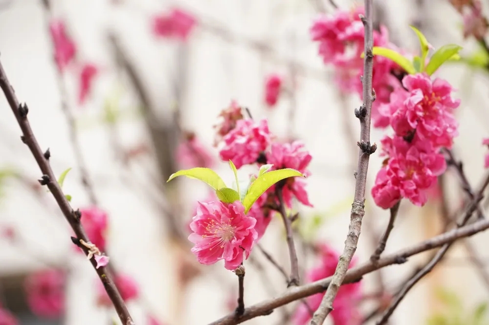 春天,是赏花的季节。红色的桃花在春风的吹拂下静静开放,那树枝上吐出的新芽寓意着新的希望与生机。