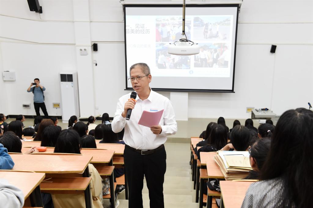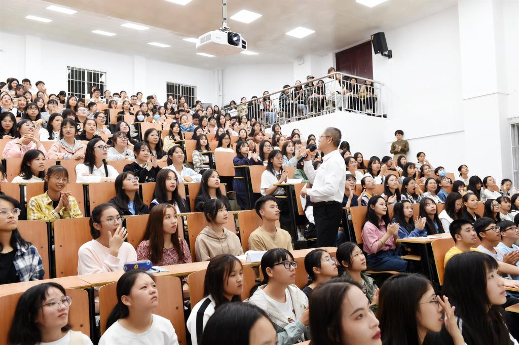 为引导2020级新生科学规划大学三年的学习生活,10月13日至14日连续两晚,梁燕清校长在5号教学楼一楼西边报告厅,开讲开学第一课《大学,我们一起追逐梦想》,每晚两个专场,场场爆满,现场气氛高涨。讲课时,梁校长引经据典,语言幽默风趣,不时传来欢快的笑声和热烈的掌声,深受学生的喜欢。