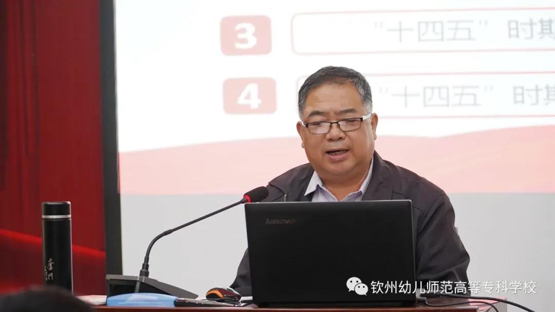 2020年12月10日下午,钦州市宣讲团到我校开展“学习宣传贯彻党的十九届五中全会精神”宣讲活动。此次活动由钦州幼专党委副书记、纪委书记李飞主持,市委党校常务副校长马瑞主讲,钦州幼专全体教职工及学生会干部共230人参加此次活动。