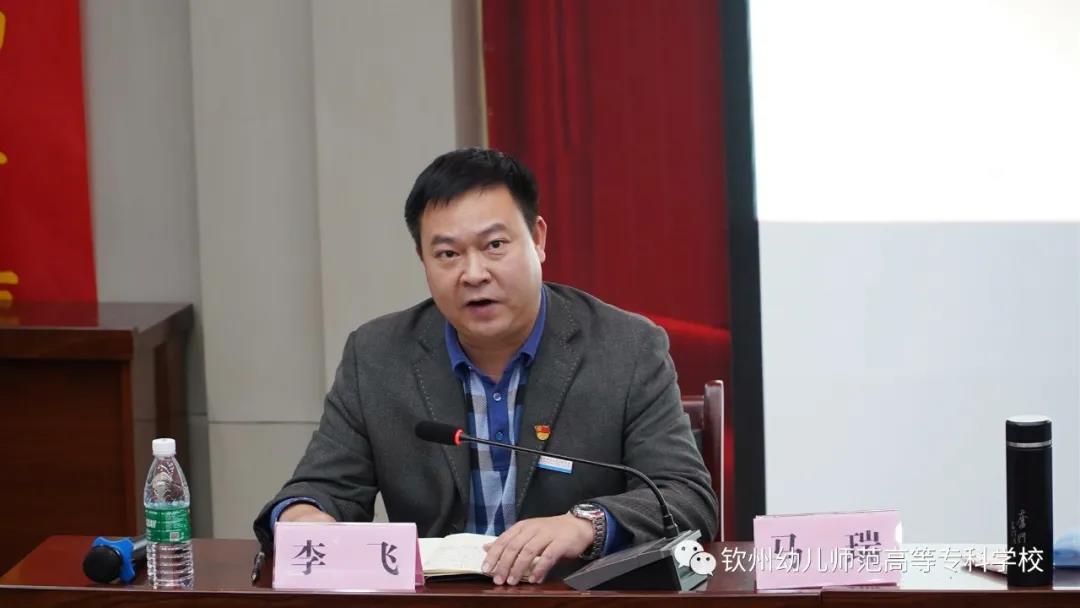 钦州幼专党委副书记、纪委书记李飞主持报告会