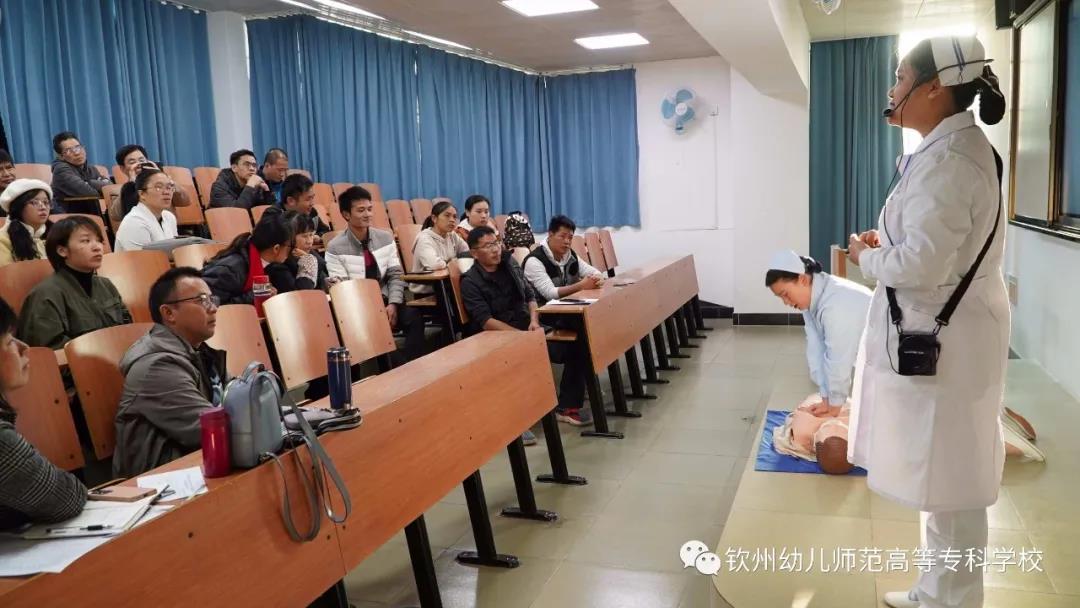 为进一步贯彻落实“健康钦州2030”规划,切实提高全校师生应对自然灾害和突发事件的能力,不断增强师生防灾避险意识,2020年12月8日至11日,我校特邀请钦州市卫生学校师生到??沽宋谌斓挠本然ぜ寄芘嘌担倚?600多名师生参加培训。