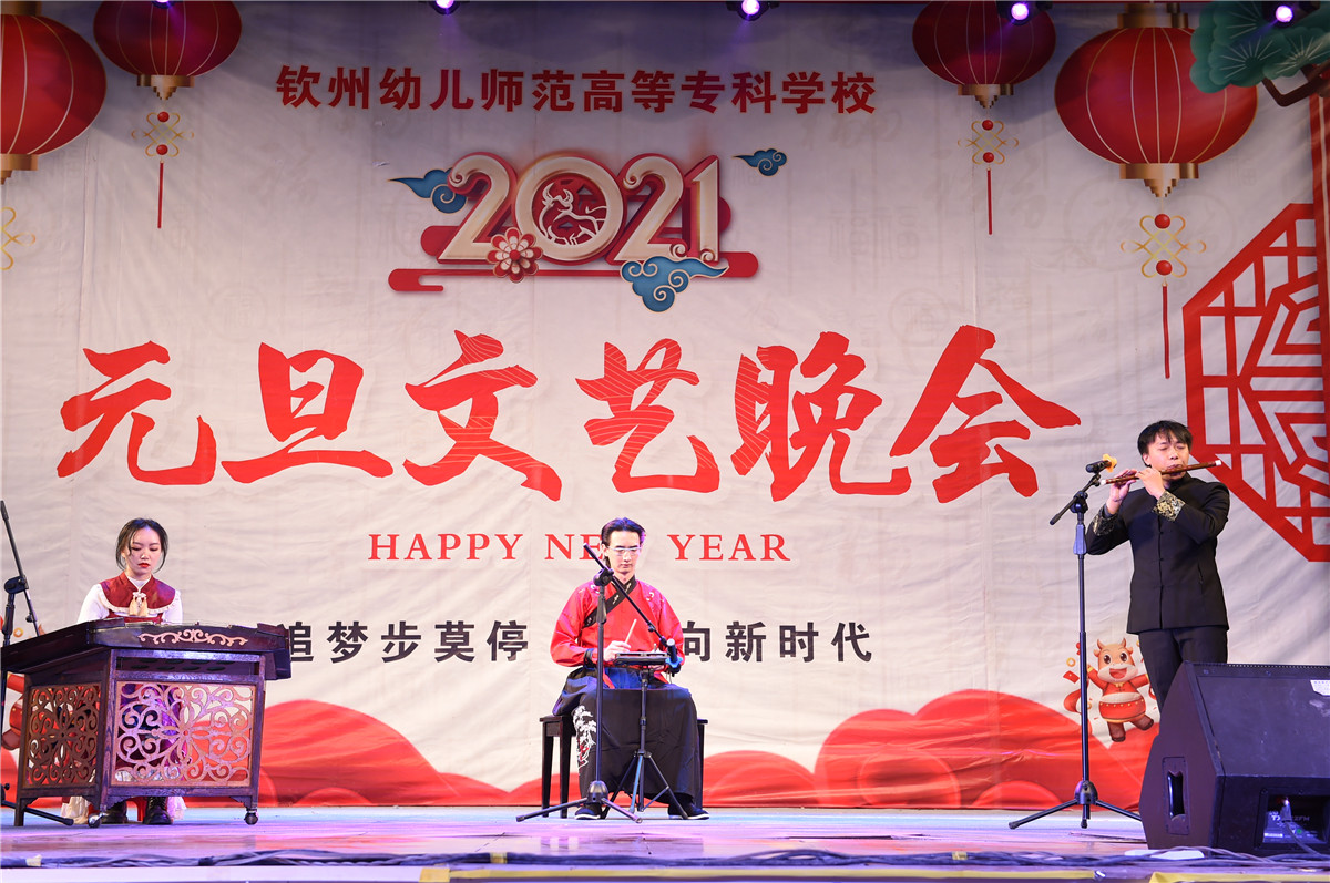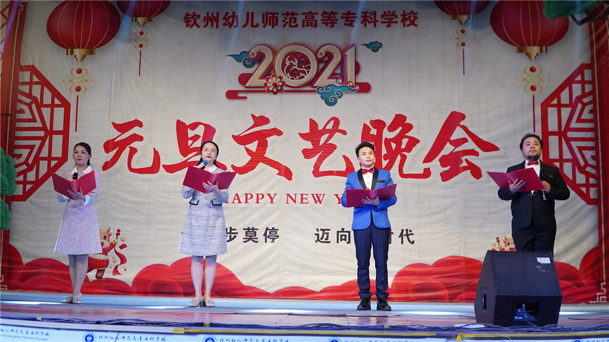 “钦州幼专扬帆起航,钦幼人凝心聚力,砥砺前行?!?2月30日晚19:30,我校2021年元旦文艺晚会在礼堂隆重举行。学校党委书记田茂群,校长梁燕清,党委副书记李飞,副校长庄礼训、陈熙、颜循泽,校领导黄兴与学校师生共同观看了晚会。