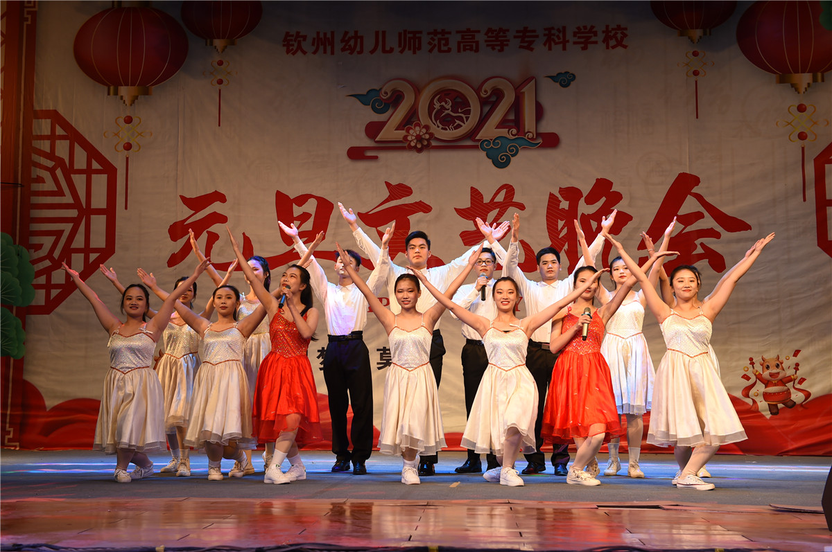 整场晚会的掌声和欢呼声一浪高过一浪,最后以大合唱《隐形的翅膀》《龙的传人》结束晚会。本次晚会是钦州幼专的第一个庆祝元旦文艺晚会,展现了钦州幼专人的激情与活力,也充分体现出钦州幼专人朝气蓬勃、自强不息的精神以及团结拼搏的斗志,让我们一起凝心聚力,砥砺前行,奋力谱写钦州幼专发展的新篇章。