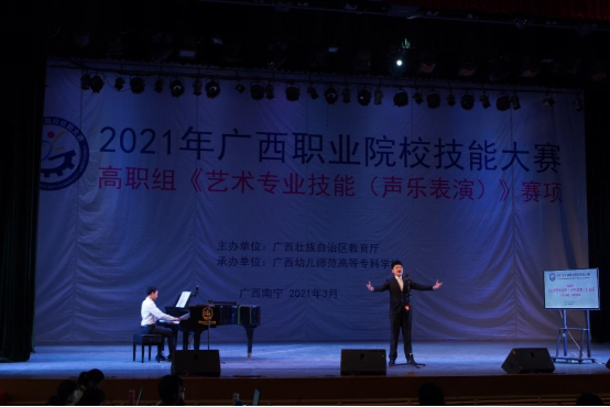3月23日至24日,2021年广西职业院校技能大赛高职组艺术专业技能(声乐表演)赛项在广西幼儿师范高等专科学校南宁校区隆重举行。本次比赛吸引了来自桂林师范高等专科学校、广西幼儿师范高等专科学校、广西艺术学院职业技术学院等全区16所高职院校共47名选手参赛。