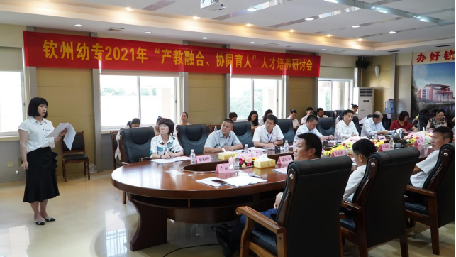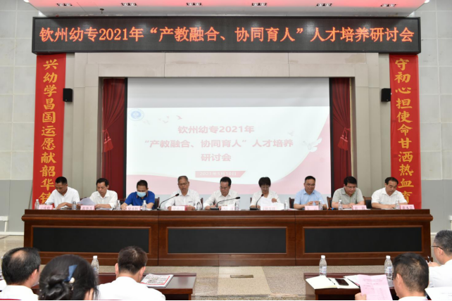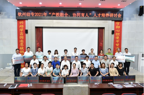 为贯彻落实《国家职业教育改革实施方案》《关于全面深化新时代教师队伍建设改革的意见》,深化产教融合,切实推动校企协同育人,提高学校人才培养质量,5月10日,钦州幼专“产教融合、协同育人”人才培养研讨会在学校5号教学楼东报告厅隆重召开。市教育局党组成员、副局长、市职教中心主任、北职校党委书记冯思明,市教育局党组成员、副局长、钦州幼专党委书记田茂群,钦州幼专党委副书记、校长梁燕清,灵山、浦北、钦南、钦北区各县区教育局长,市教育局人教科科长吴庆彪,市教育局职成科科长黄本芸,钦州市实验小学、钦州市实验幼儿园等23所小学、幼儿园的校(园)长及我校部分师生近两百人参加了研讨会。