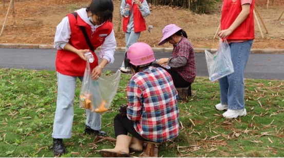 最后,志愿者们还给钦江河畔做清洁工作的阿姨们送去了一些水和面包,以此来表达对河边清洁工作者的敬意。