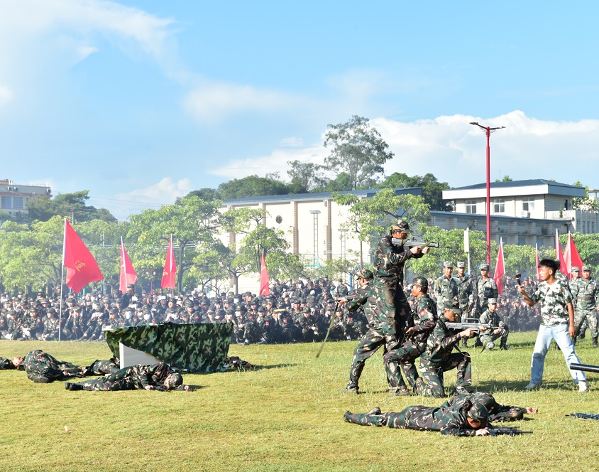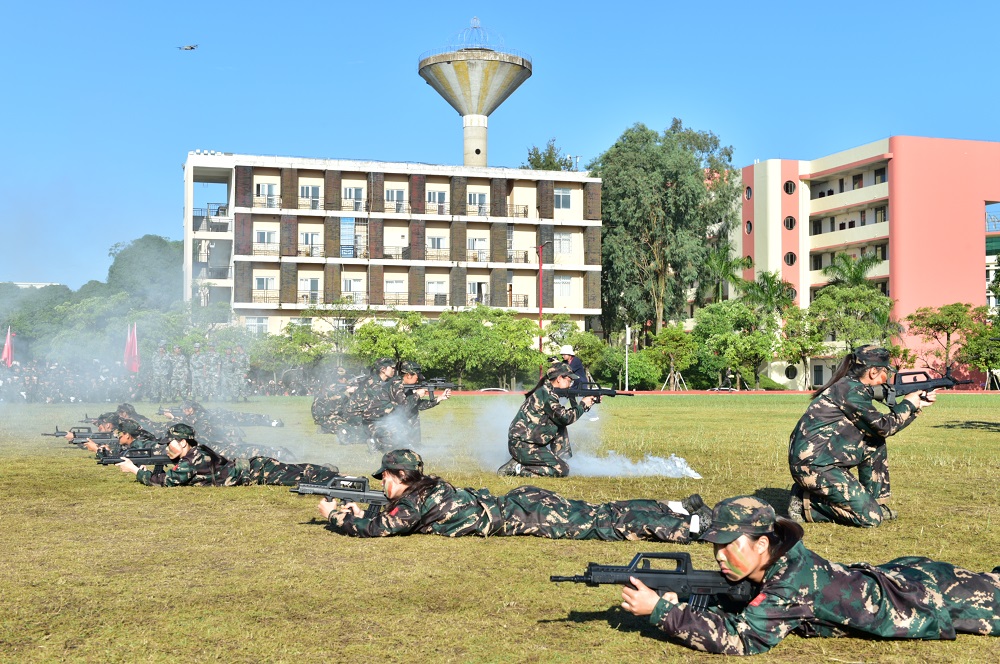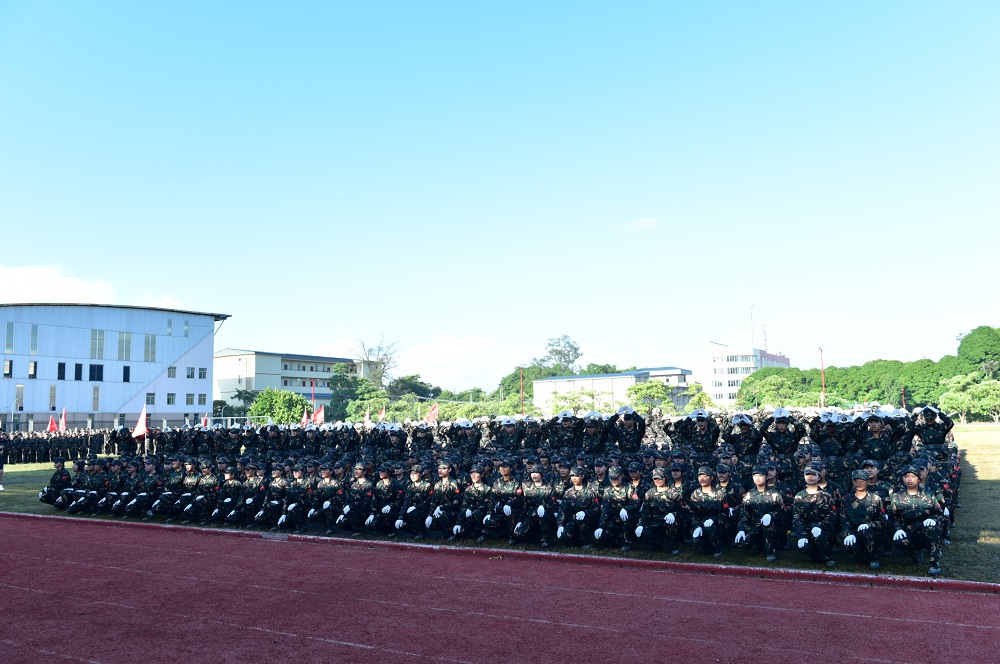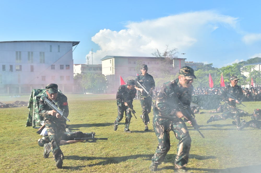 会上,全体同学在教官带领下进行军训会操,接受领导检阅。军训会操项目丰富多彩,有分列式、大方队、匕首操、擒敌拳、刺杀操、战术演练等。各连队的精彩表演赢得观众阵阵掌声。