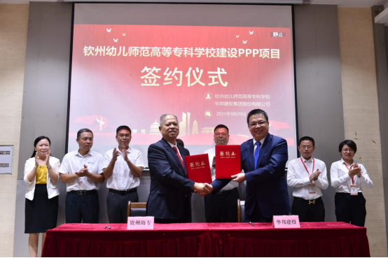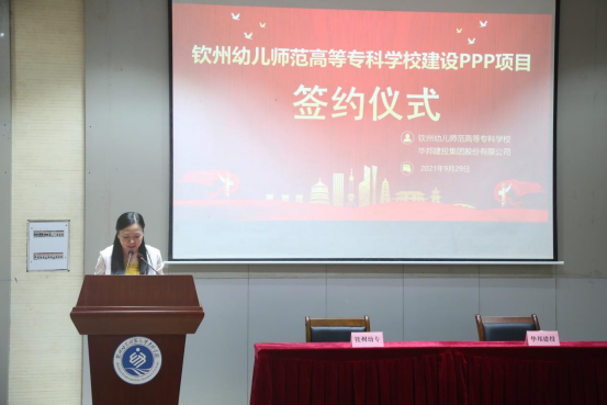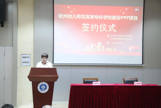 9月29日钦州幼儿师范高等专科学校PPP项目签约仪式在我校第一会议室举行。市教育局党组成员、副局长,钦州幼专党委书记田茂群出席仪式并致辞,钦州幼专代表梁燕清校长与华邦建投集团代表周建华总经理代表双方签约。副校长邓秋晓主持签约仪式。