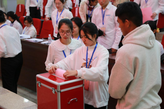 钦州幼儿师范高等专科学校第一次学生代表大会于11月27日在五号教学楼东报告厅成功召开。党委委员、副校长陈熙,学工处副处长陈龙昌(主持全面工作),团委副书记李琛琛(主持全面工作),团委副书记王忠,各系团总支书记(副书记),以及165名学生代表、27名列席代表参加会议。大会由团委副书记王忠主持。