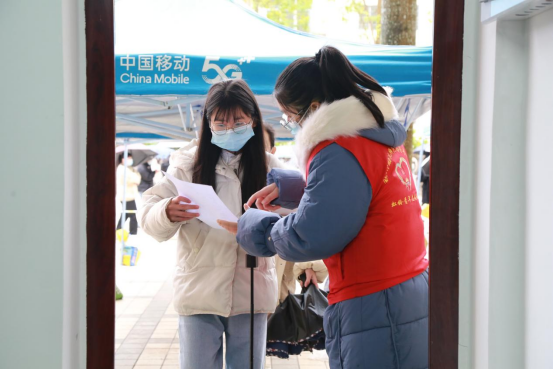 当天,师生在医护人员和志愿者的指引下有序排队入场。全体接种师生自觉佩戴口罩、保持一米间距,携带《新冠病毒疫苗加强免疫接种知情同意书》,有序排队等候接种。医护人员细心指导我校学生填写接种知情同意书,并详细地咨询学生当前身体健康状况和以往病史,确认接种师生身体状况符合接种第三针的接种要求。