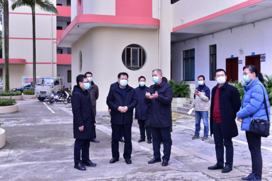 2月22日下午,自治区教育厅二级巡视员汪维一行到我校实地督查疫情防控和校园安全工作。市委教育工委书记,市教育局党组书记、局长赖廷耀陪同检查,学校党委副书记、校长梁燕清陪同并作工作汇报。