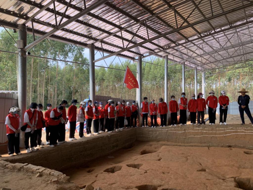 实践队来到了越州古城考古现场。中山大学考古研究员韦博士为大家讲解越州故城历史与发掘成果,丰富了队员们的历史文化知识,拓展了他们的视野。