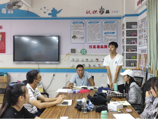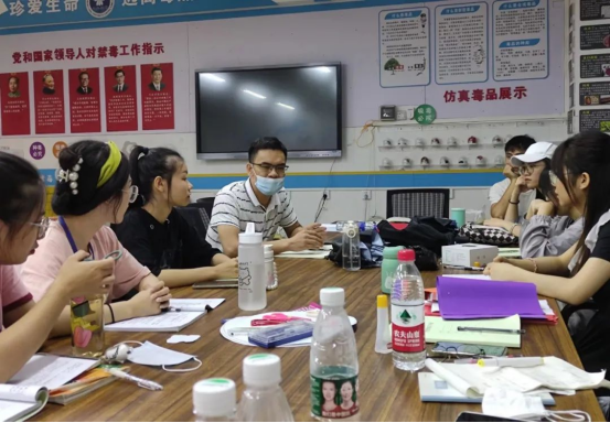 学校带队老师与实习学生进行深入交流,了解学生的实习情况,就学生在实习过程中遇到的班级管理、上课备课等问题进行耐心指导。