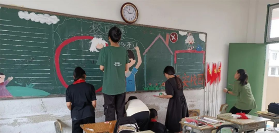 实习生积极参与到幼儿园、小学的环境创设当中,并协助学校举办各类活动,在学校各处留下她们辛勤的身影。