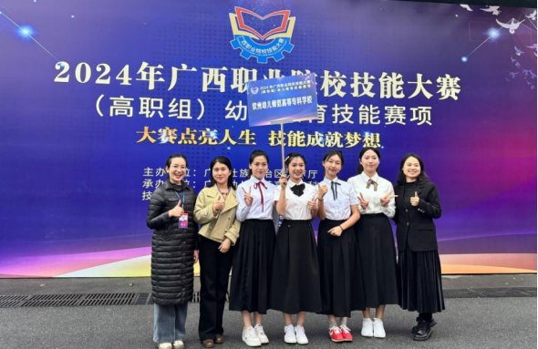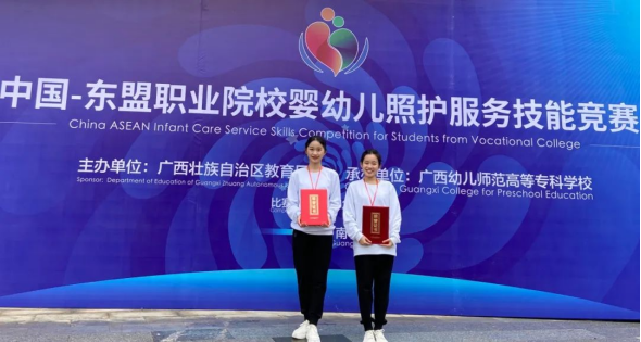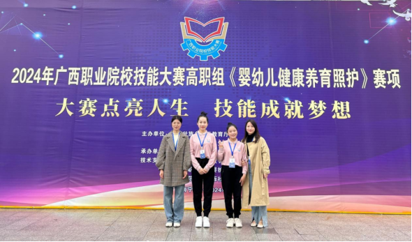 婴幼儿托育服务与管理专业建设和人才培养渐显成效。师生参加专业赛事取得优异成绩。2023年获“一带一路”暨金砖国家技能发展与技术创新大赛首届婴幼儿照护职业技能赛项区域选拔赛一等奖1 项,二等奖2项;2023年“幼之幼杯”全国早教托育专业知识与技能竞赛一等奖;2024年广西职业院校技能大赛“婴幼儿健康养育照护”赛项三等奖。