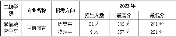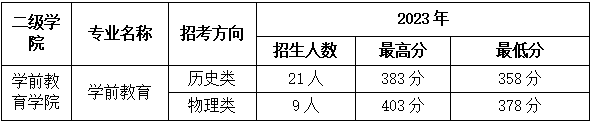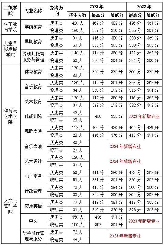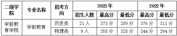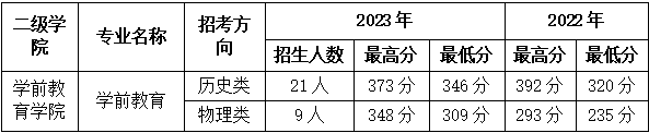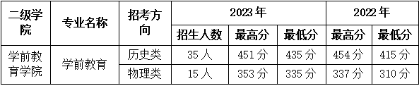 钦州幼专2022年和2023年各专业在各省普通高考投档录取分数线