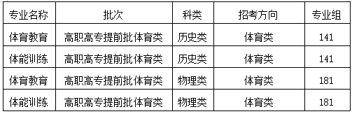 本批次志愿填报时间:2024年6月25日15:00至29日10:00。首选科目为历史的考生,可在高职高专提前批体育类选择我校141专业组填报;首选科目为物理的考生,可在高职高专提前批体育类选择我校181专业组填报。如图表所示: