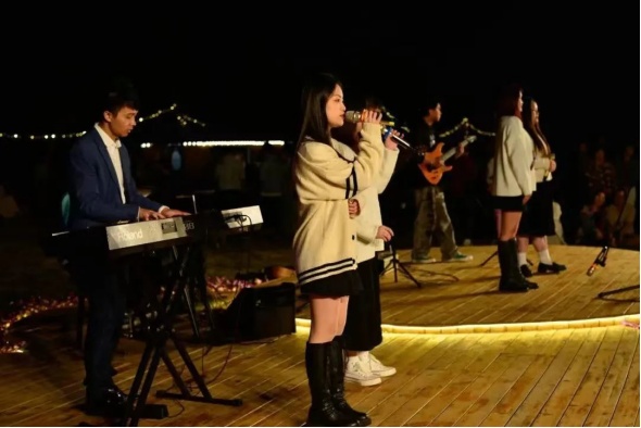 音乐表演专业师资队伍雄厚,学校现有艺术教师有61人,具有硕士研究生及以上学历占比高,副高及以上职称人数多。近年来,教师团队指导学生在广西职业院校技能大赛高职组艺术专业技能(声乐表演)赛项屡获一、二等奖;指导合唱《丝路驼铃》、表演唱《赶?!坊窆阄鞯诹齑笱帐跽寡莼疃掷嘁易椋ㄗㄒ底?二等奖;师生创排的曲艺类节目《喜宴》获第十届全区基层群众文艺会演钦州选拔赛一等奖,并入选自治区会演。学?;衿馈扒罩菔幸帐跞瞬判「叩亍?。