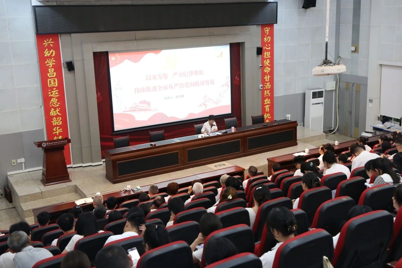 7月1日下午,我校召开2024年警示教育大会暨党委书记讲全面从严治党专题党课,市教育局党组成员、副局长,校党委书记田茂群同志以《以案为鉴,严守纪律规矩,持续推进全面从严治党向纵深发展》为题讲专题党课,并作警示教育讲话。