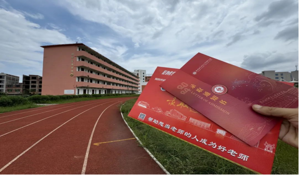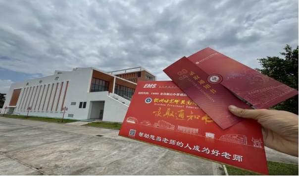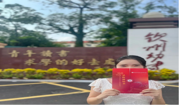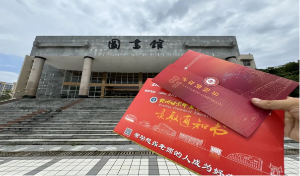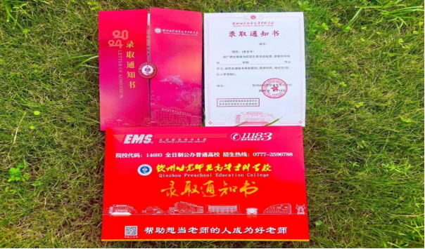 通知书每一处细节都体现出钦州幼专的元素。以中国红为基底,金色烫金点缀,艺术化的数字设计、创意图形和象征性元素巧妙融合,具有传统文化的美感,庄重而艺术。