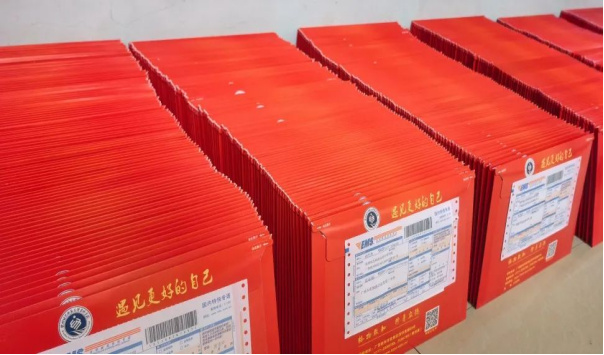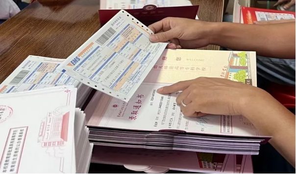录取通知书经过认真核查后,由邮政快递工作人员进行封贴处理,以确保其完整性和保密性。
