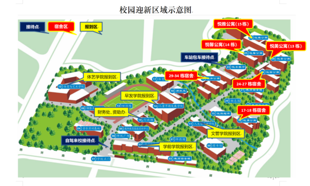 自驾车、出租车或网约车不能进入校园,会有志愿者引导学生进入学校,进入校门后找到所在学院接待点,由学院志愿者带到所分配宿舍入住,放好行李后自行前往学院报到区办理注册手续。