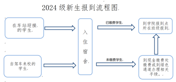 出站后找到学校设置在车站的集中接待点乘学校包车回到宿舍区,下车后找到所在学院接待点,由学院志愿者带到所分配宿舍入住,放好行李后自行前往学院报到区办理注册手续。