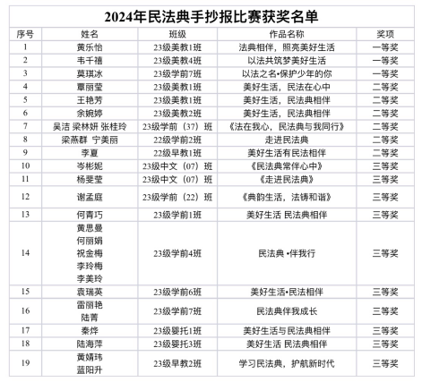 本次活动不仅让学生加深了对民法典的理解、提升了应用能力,也展现了大家的创意与才华,取得了良好的成效。愿每位同学都能成为法治之光的传播者,照亮他人,温暖社会,共创美好未来!