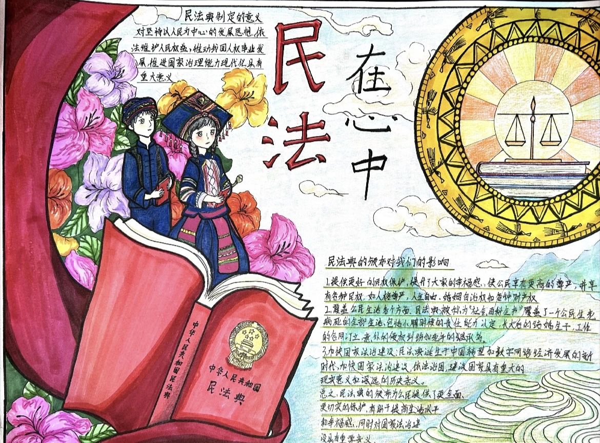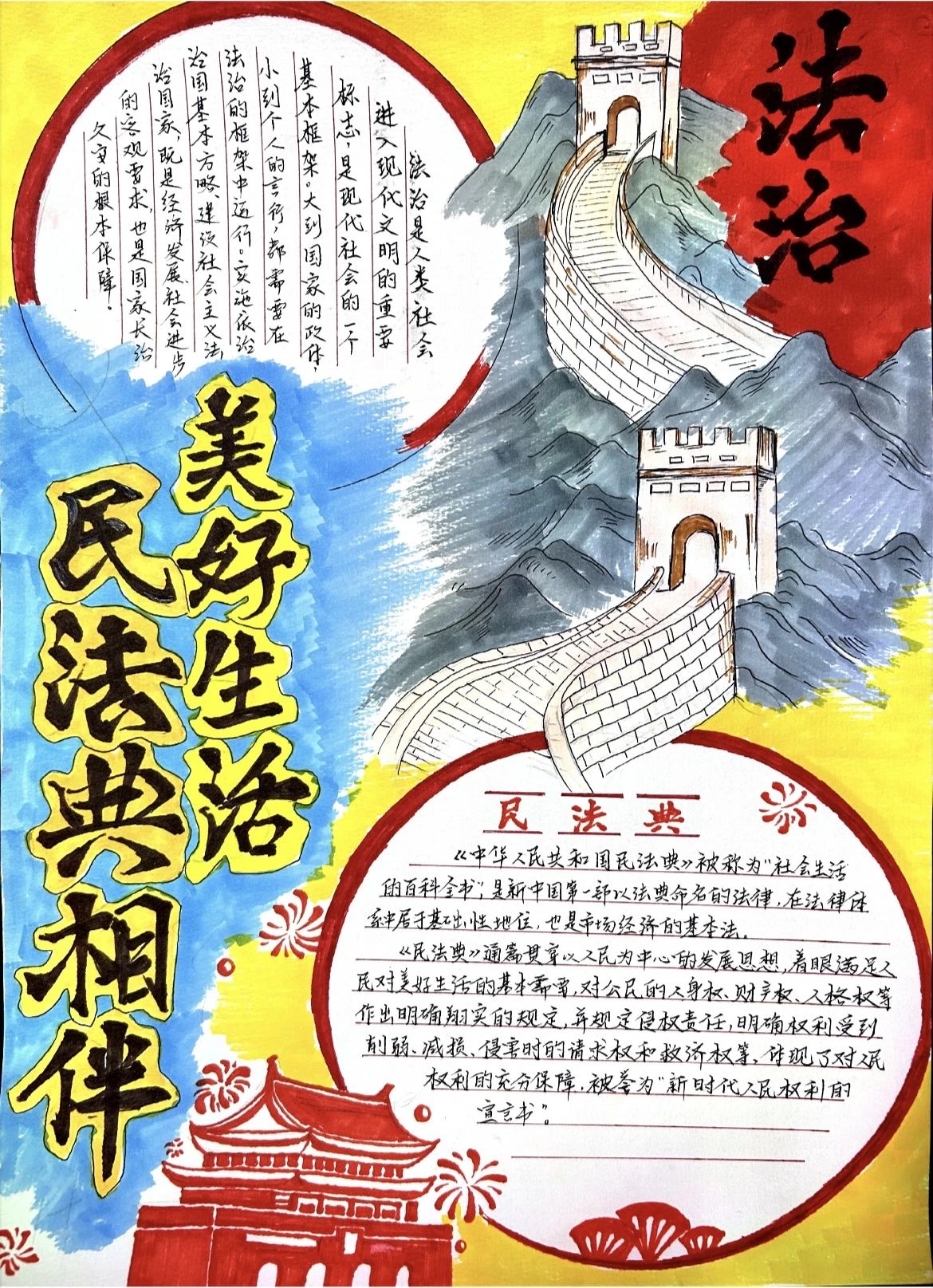 9月中下旬,我校团委举办了“美好生活·民法典相伴”主题民法典手抄报评比活动。