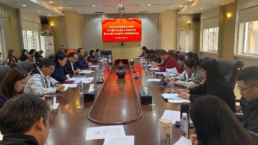 为贯彻党中央、国务院关于高校毕业生就业工作的决策,落实教育部和自治区教育厅有关部署,全面总结我校2024届高校毕业生就业工作,推进2025届毕业生就业各项工作开展,近日,我校在行政楼第二楼会议室召开2024届毕业生就业工作经验总结暨2025届毕业生就业工作启航动员会议。党委副书记、校长陈鹏出席会议并作讲话。副校长陈熙主持会议。各二级学院主要领导、分管就业工作的领导、招生就业处全体人员以及全校就业专员参加会议。
