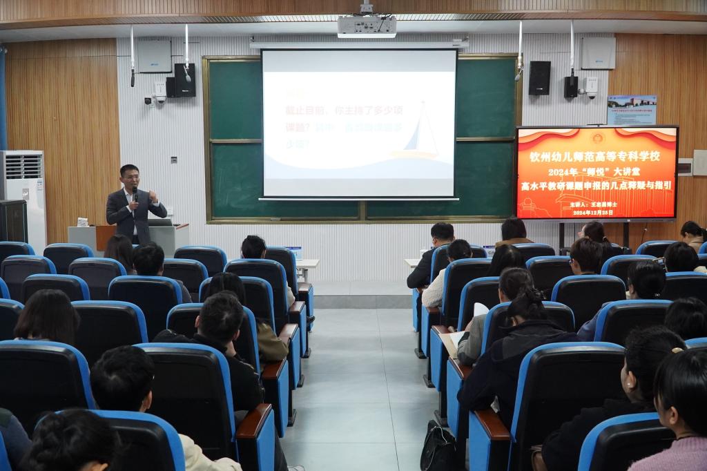 为深入贯彻落实科教兴国战略,进一步提升教师队伍的教育科研能力,增强教师在教育科研领域的专业素养。12月25日下午,我校邀请南宁师范大学教授、硕士生导师王忠昌博士来我校作题为《高水平教研课题申报的几点释疑与指引》的专题讲座。校党委副书记、校长陈鹏,副校长邓秋晓及部分教师代表参加活动,活动由科研处负责人李小敏主持。