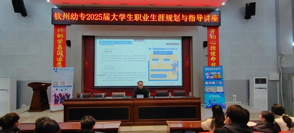 为深入贯彻落实国家关于高校毕业生就业的决策部署,抢抓就业关键期,全力促进2025届毕业生高质量充分就业。近日,我校在五号楼东报告厅举办2025届毕业生“规划职业蓝图,启航未来征程”就业服务指导讲座。校党委副书记、校长陈鹏出席活动并作题为《全球经济形势到大湾区的需求及毕业生职业生涯规划》的精彩讲座?;疃寡肓斯阄髑瞬欧裰行木鸵档际α中?、特岗教师韦思彤作专题讲座。讲座采取“线上”+“线下”相结合的方式进行,由我校副校长陈熙主持,22级辅导员、就业专员、就业指导教师以及2025届毕业生共2500余人参加了讲座。