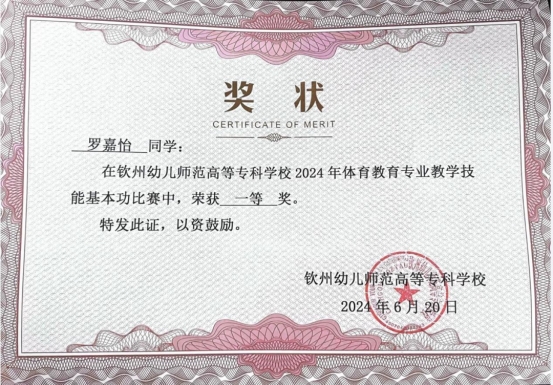 她深知,扎实的专业知识是未来立足社会的根本。在校期间,她始终保持对知识的强烈渴望,学习态度端正,勤奋刻苦??翁蒙希ㄗ⑻?,积极与老师互动;课后,她主动钻研专业知识,不断拓宽知识领域。凭借不懈努力,她的成绩一直名列前茅,荣获2023-2024学年度本专科生国家奖学金、连续两年获得校级一等奖学金,还多次获得“三好学生”“优秀共青团员”“最美钦幼学子”等荣誉称号。在专业技能竞赛方面,她精心准备,表现出色,获得2024年体育教育专业教学技能基本功比赛一等奖、学校2024年体育专业全区师范生教学技能大赛校级比赛二等奖等荣誉,用实力证明了自己的专业素养。