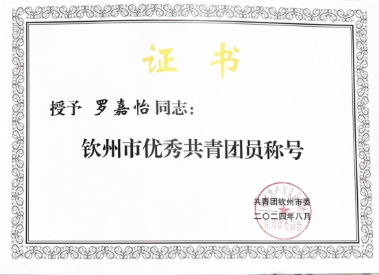 作为一名学生志愿者,她始终秉持"奉献、友爱、互助、进步"的志愿服务精神,以持续的热情参与校内外服务,累计时长已达650小时。在校期间,她活跃于迎新、毕业晚会、运动会等校园活动,并参与环广西公路自行车赛等大型赛事服务;寒暑假投身“三下乡”、返家乡实践及疫情防控等社会服务,同时参与无偿献血等公益行动。她以热情与行动传递温暖,在志愿服务中成长,更带动他人参与,展现当代青年的责任与奉献精神。
