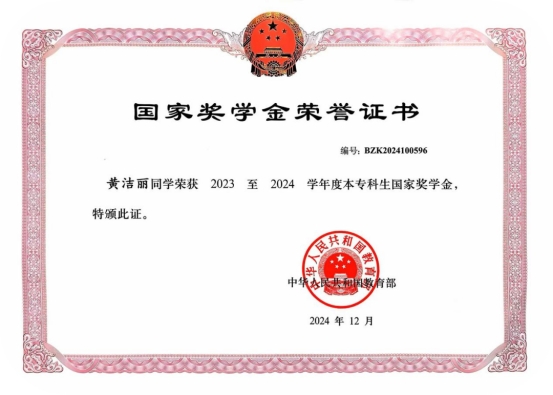 本期让我们走近国家奖学金获得者——黄洁丽同学,感受她身上的榜样力量!