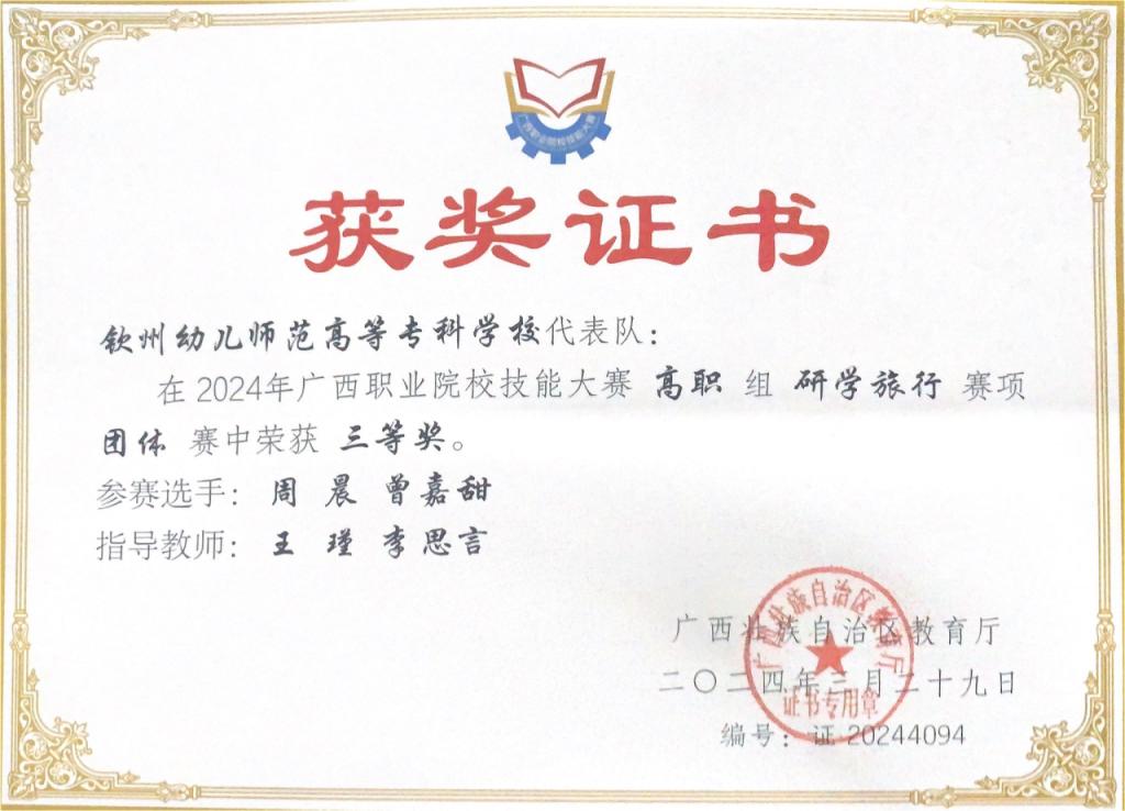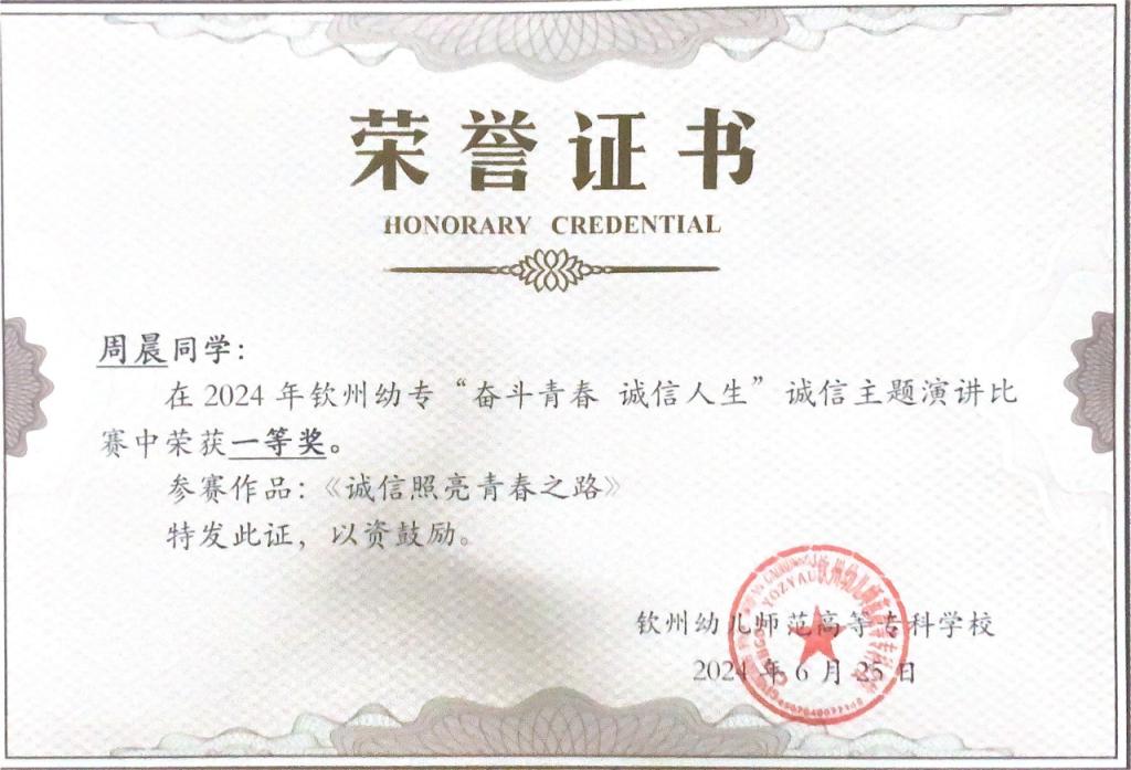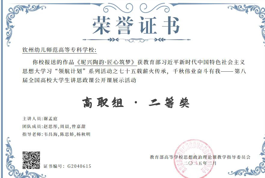 回首过去一年半的求学历程,她说:“大学生活是我成长的阶梯,也是迈向未来的重要起点。在钦幼的时光里,我从初入校园的懵懂,到逐渐明晰目标并付诸行动,一步步突破自我,收获了知识与成长。我由衷感激学校对我的悉心培养,感谢每一位老师的悉心指导和同学的温暖陪伴,正是他们的鼓励让我找到前行的力量。未来,我将以今日所学为笔,以青春为墨,书写属于自己的锦绣篇章。”