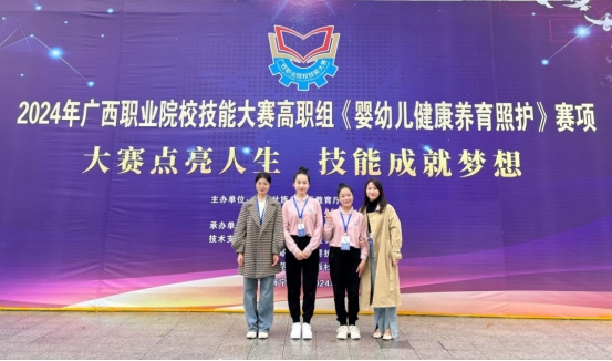 学院人才培养渐显成效。学生参加专业赛事取得优异成绩,2022年获中国——东盟职业院校婴幼儿照护服务技能竞赛三等奖;2023年获“一带一路”暨金砖国家技能发展与技术创新大赛首届婴幼儿照护职业技能赛项区域选拔赛一等奖1项,二等奖2项;2024年获广西职业院校婴幼儿健康养育照护赛项三等奖1项,婴幼儿照护赛项三等奖1项;2024年获中国--东盟职业院校婴幼儿照护服务技能竞赛二等奖1项,三等奖1项;2024年获广西第七届大学生艺术展演活动艺术作品类甲组二等奖等。