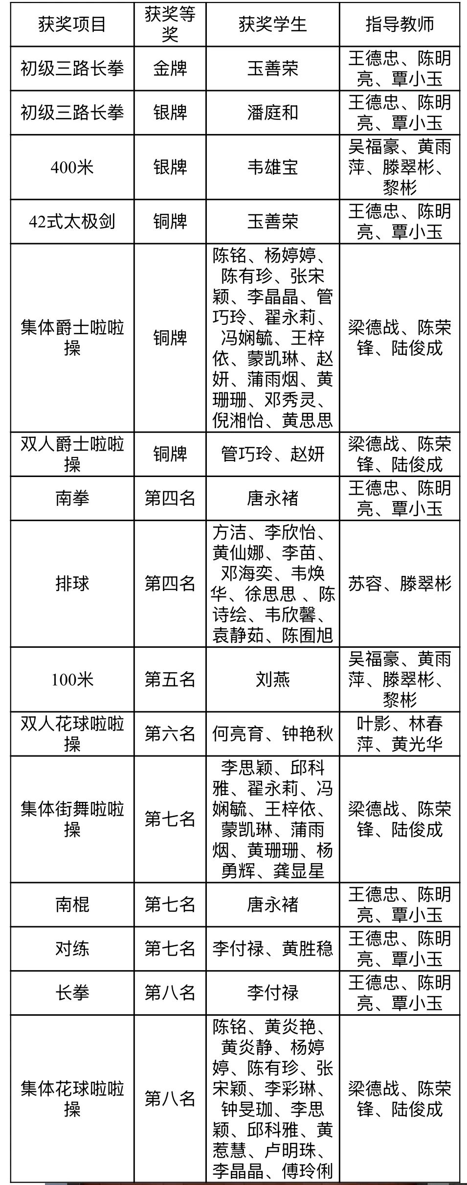 2025年7月至8月,广西壮族自治区第十四届学生运动会在全区多个城市及高?;鹑染傩?,共设11个竞赛大项,汇聚全区高校、中学15000余名运动员同场竞技。我校选派85名健儿参与武术、啦啦操、田径、排球、篮球五项赛事,他们以顽强拼搏的精神和精湛技艺斩获1金2银3铜、2个第四名、1个第五名、1个第六名、3个第七名及2个第八名的优异成绩,全面展现了学校体育教育的扎实成效与钦幼学子的青春风采。