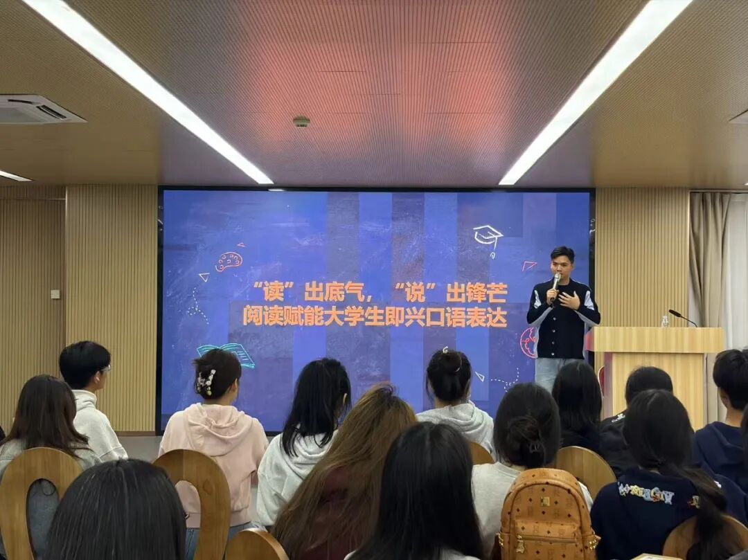 讲座围绕“阅读是为了更好的表达”这一主题,聚焦大学生常见的“被点名就失声”及过度依赖AI工具等现象,以幽默生动的语言,深入阐释阅读与口语表达的内在联系;并通过《活着》等经典作品,引导学生体味字里行间的语言魅力;还针对当代大学生的“表达困惑”提出切实可行的解决办法和建议。现场互动频繁,气氛轻松活跃。