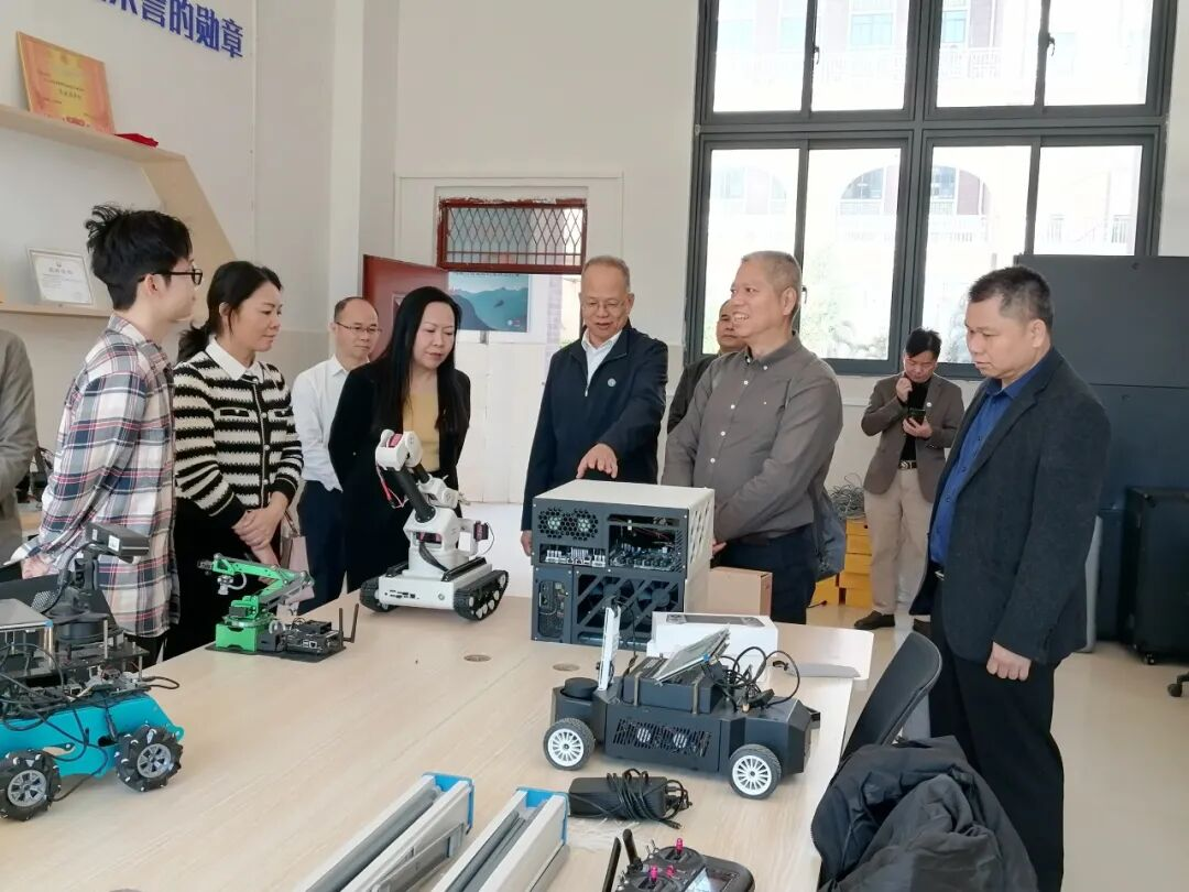 在广西制造工程职业技术学院开展调研时,调研团队详细了解该校在智能机电技术、机械制造及自动化、物联网应用技术、人工智能应用技术等专业领域的建设成果,实地考察了该校机电类专业、人工智能技术应用专业实训设备、教学应用及日常管理模式,对智能机电技术、人工智能技术应用等专业的建设投入有了清晰把握;调研过程中,双方就相关专业开设背景、实训室经费投入、师资队伍建设、校企合作深度融合、课程设置等内容进行了全面探讨。