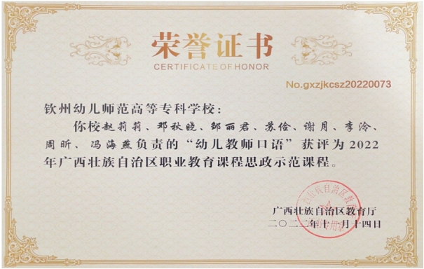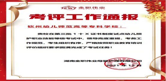 在自治区教育厅和钦州市政府的大力支持下,重点建设学前教育、音乐教育、美术教育3个特色专业,开展“学做合一,岗学一体”的岗课赛证教学模式改革,建设校级精品课程,深化课程教学改革;建设精品录播室、微格教室、智慧实训室、普通话测试站、标准化考场等集教学、科研、服务于一体的现代化实训基地,不断改善办学条件;组织开展“1+X”证书制度试点工作等等,打造高等职业教育发展优质品牌,助力我校成为北部湾地区学前教育人才培养培训重要基地。2020年,学?;衽罩菔械谖迮锥逃瞬判「叩兀?021年学前教育教育专业获准立项自治区示范专业及实训基地的建设,2022年音乐教育专业、美术教育专业获准立项自治区示范专业及实训基地的建设。2022年组织学生参加各级各类的比赛获一等奖3个,二等奖9个,三等奖11个。