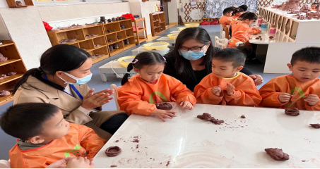 图3-2 学校美术教育专业教师指导钦州市第二幼儿园的孩子做泥塑