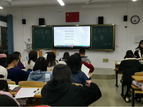 为了弘扬中华民族优秀传统文化,丰富校园文化生活,提升当代大学生的文化修养和审美情趣,培养学生对书法的兴趣,提高学生的汉字书写水平,12月20日晚上7:30--8:00,初等教育系举行全系学生硬笔书法比赛。
