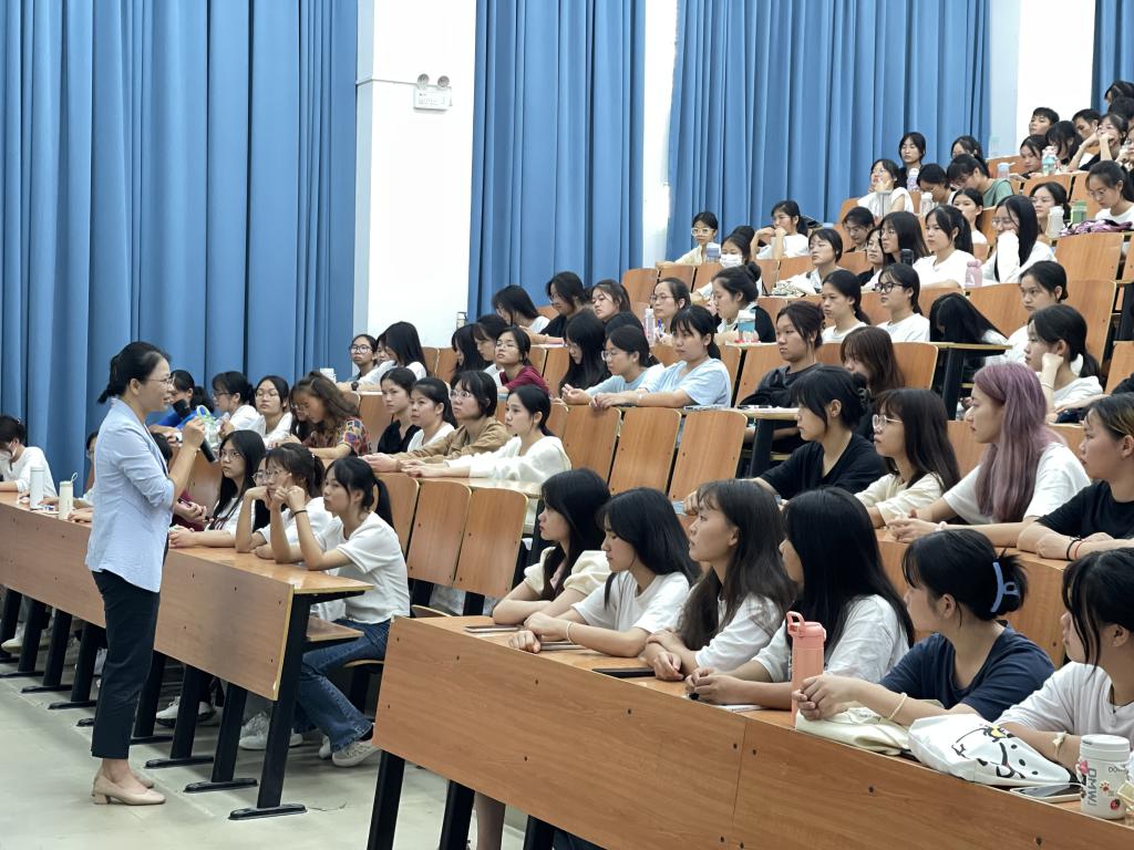 图为学前教研室主任张春燕给22级学前教育专业学生进行讲解