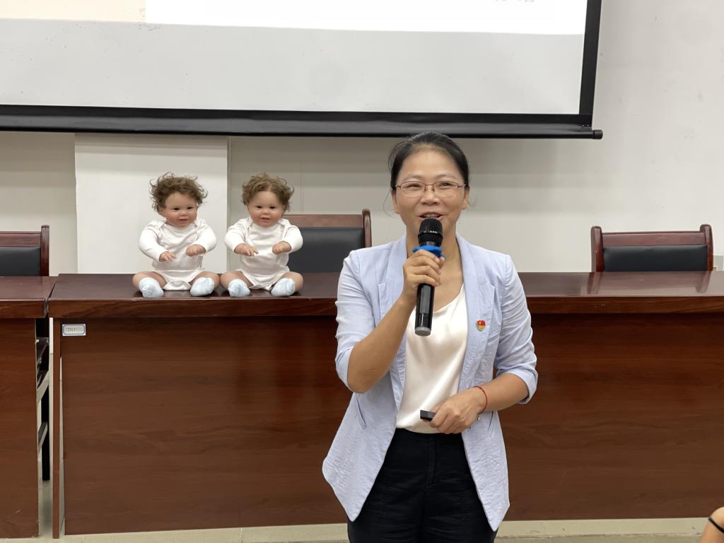 图为学前二系副主任高玉燕给22级婴幼儿托育服务与管理专业学生进行讲解