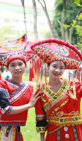 广西壮族人口1482万人,占广西人口的33%,是全国55个少数民族人口最多的民族。壮锦是壮族独一无二的民族服饰,以图案精美和色彩艳丽著称。