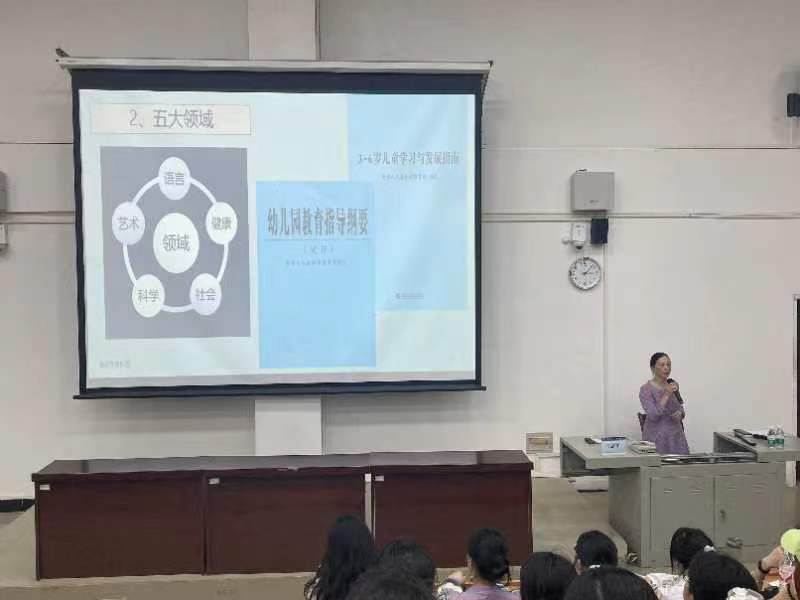 钦州市第一幼儿园马忠红园长作了题为《幼儿园微型课展示技巧(语言类、健康类)》的专题讲座,讲座中,马园长将《幼儿园教育指导纲要》的五大领域逐一细分讲解,并结合了幼儿教师资格证考试历年来的变化及考试流程、答题方法做了非常具体的分析讲解。