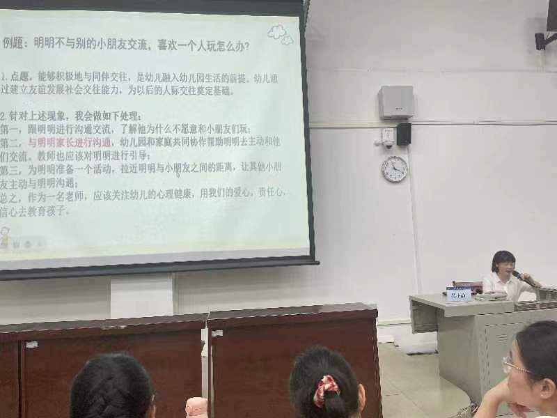 近日,学前教育一系先后邀请钦州市第二幼儿园园长吴小静、钦州市第一幼儿园园长马忠红、钦州市实验幼儿园园长陆玲到??菇淌ψ矢裰た际悦媸约记山沧?,帮助学生更好地准备教师资格面试,明确备考方向,从容应对面试,提高幼儿园教师资格证考试通过率。
