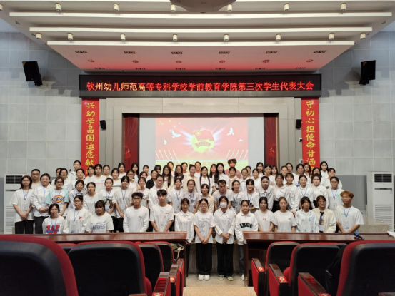 为深入学习贯彻党的二十大精神,加强学生干部队伍建设,近日,学前教育学院在五号教学楼东报告厅召开第三次学生代表大会。学前教育学院院长梁艳珍、分团委副书记韦映存与全院47名学生代表参加会议。