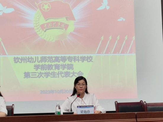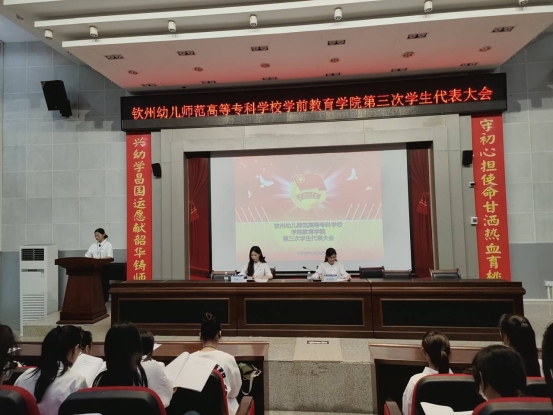 会议听取并审议了《钦州幼儿师范高等专科学校学前教育学院第三次学生代表大会选举办法(草案)》,经会议表决,获得全票通过。随后,以无记名投票方式差额选举产生学前教育学院第三届学生会主席团成员朱芊桦、韦李容、农小宁同学。